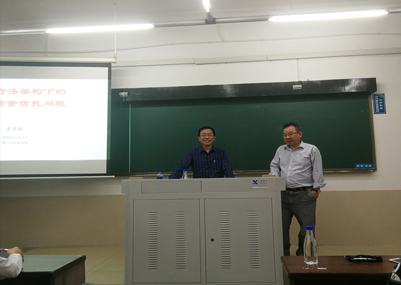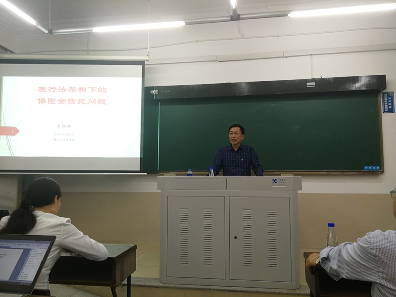 2018年11月12日晚7点,华东政法大学经济法学院教授、保险法研究所所长、日本法研究中心主任李伟群做客我院,讲授“现行法架构下的保险金信托问题”。讲座由徐国栋教授主持,出席讲座的还有来自厦门市中院的法官、厦门市律协的律师等实务界嘉宾,以及一些社会兴趣人员,部分博士生、硕士生以及本科生也参加了此次讲座,法学院A201教室座无虚席。