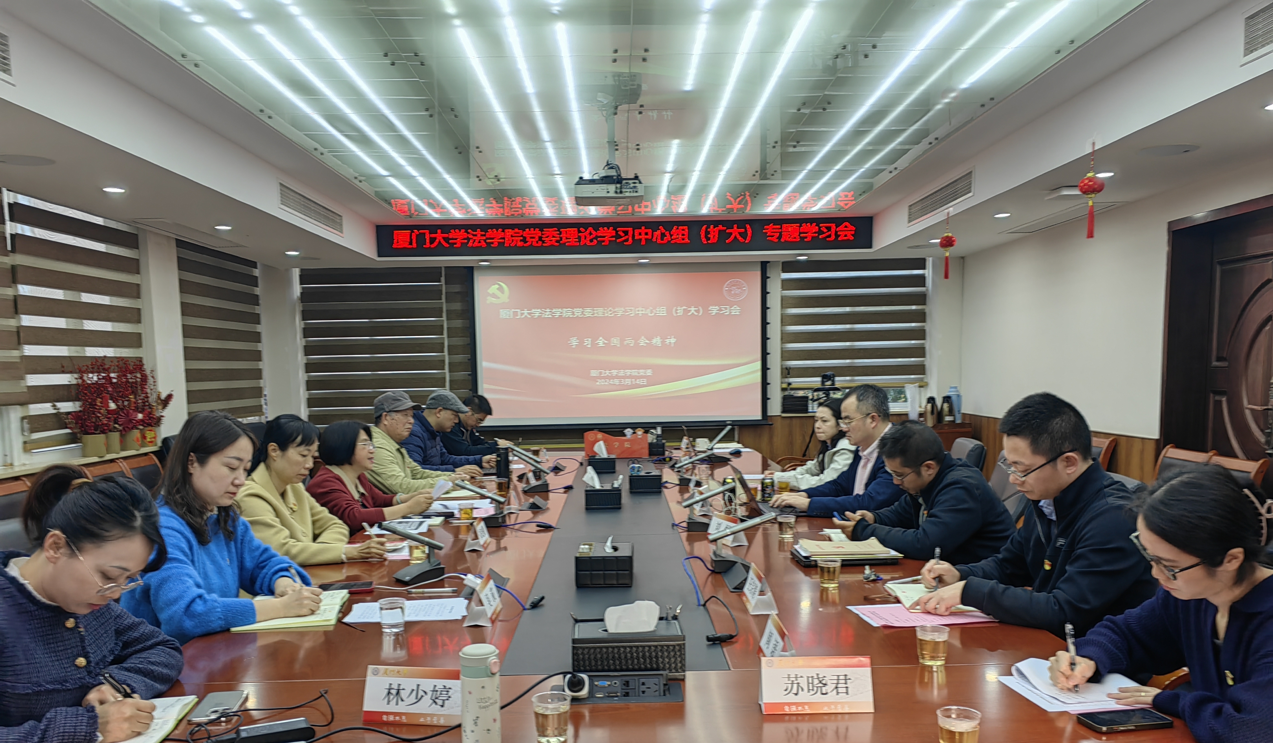 3月14日下午,法学院党委在B220会议室召开党委理论学习中心组(扩大)专题学习会,学习习近平总书记在全国两会上的重要讲话精神和全国两会精神。学院党委委员、教工党支部书记/支委参加会议,校基层党建工作联络员林永生列席指导,院党委书记何丽新主持会议。