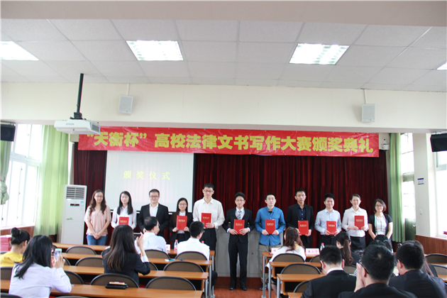 2015年5月24日上午9点,“天衡杯”高校法律文书写作大赛颁奖典礼在法学院A302会议室隆重举行。福建天衡联合律师事务所资深律师王哲律师、法学院副院长林秀芹老师、法学院党委副书记郭锦星老师、法律硕士教学秘书康小宁老师、研究生辅导员宋磊华老师出席了本次颁奖典礼,与来自全国各大高校的获奖选手共襄盛举。