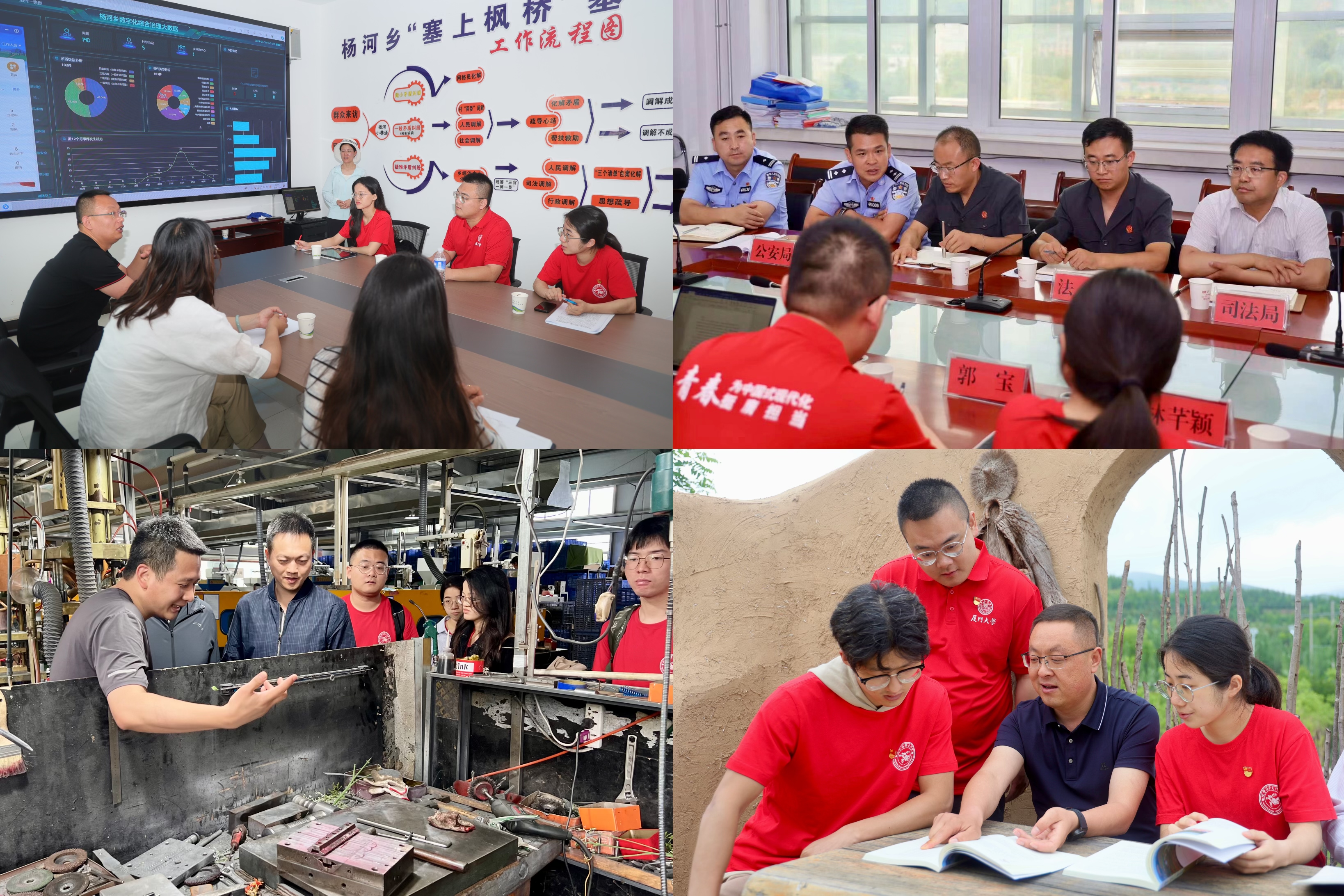 乡村振兴,法治同行。博士团深入张树村等4个镇村、司法局等7个行政单位及闽宁扶贫产业园区等地实地走访、座谈研讨,讨论民主法治示范村建设问题,聚焦“塞上枫桥”基层社会治理机制,探索优化营商环境的法治保障单元,挖掘法治乡村建设的“隆德经验”与“厦大方案”。