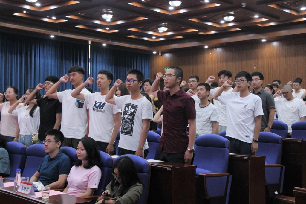 典礼进入签订《诚信承诺书》议程。在2019级本科生高琳越的带领下,全体2019级新生签署《诚信承诺书》并郑重宣誓。
