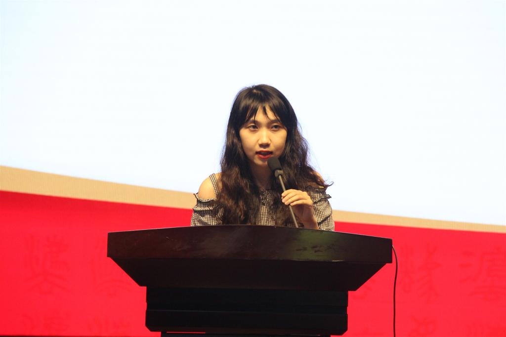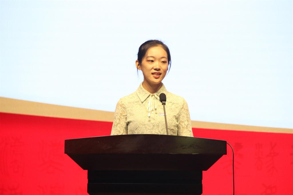 作为学生代表,2017级本科生张雯悦代表老生对学弟学妹的到来表示热烈欢迎。她叙述了自己对厦门大学校训“自强不息,止于至善”中“至善”的所思所感,强调其在于对品行及人格的完善,并鼓励大家应当具备独立之精神、自由之思想,并以全社会法治为志业,而并非满足于私利的蝇营狗苟。