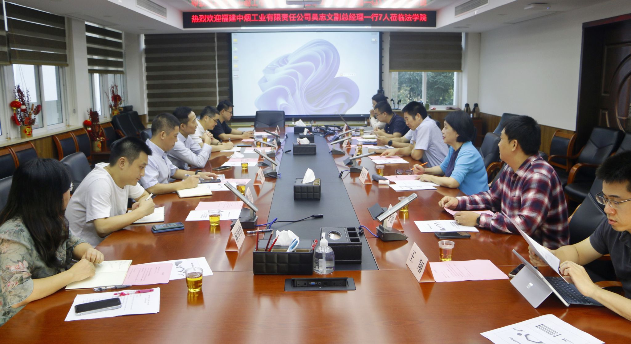 宋方青院长首先代表学院,对福建中烟工业有限责任公司一行人的到来表示热烈欢迎,并介绍了法学院学科建设的基本情况。她表示,厦门大学法学院学科历史悠久、实力雄厚,在近一百年的办学历史中,为国家培养了一大批高素质法治人才。为了进一步贯彻落实习近平总书记致厦门大学建校100周年的贺信精神和要求,全面提升服务区域发展和国家战略能力,法学院成立了烟草法律与经济政策研究中心,旨在建立常态化合作机制,共同开展相关研究工作,为推进法治烟草方面的理论研究以及烟草行业高质量发展贡献力量。