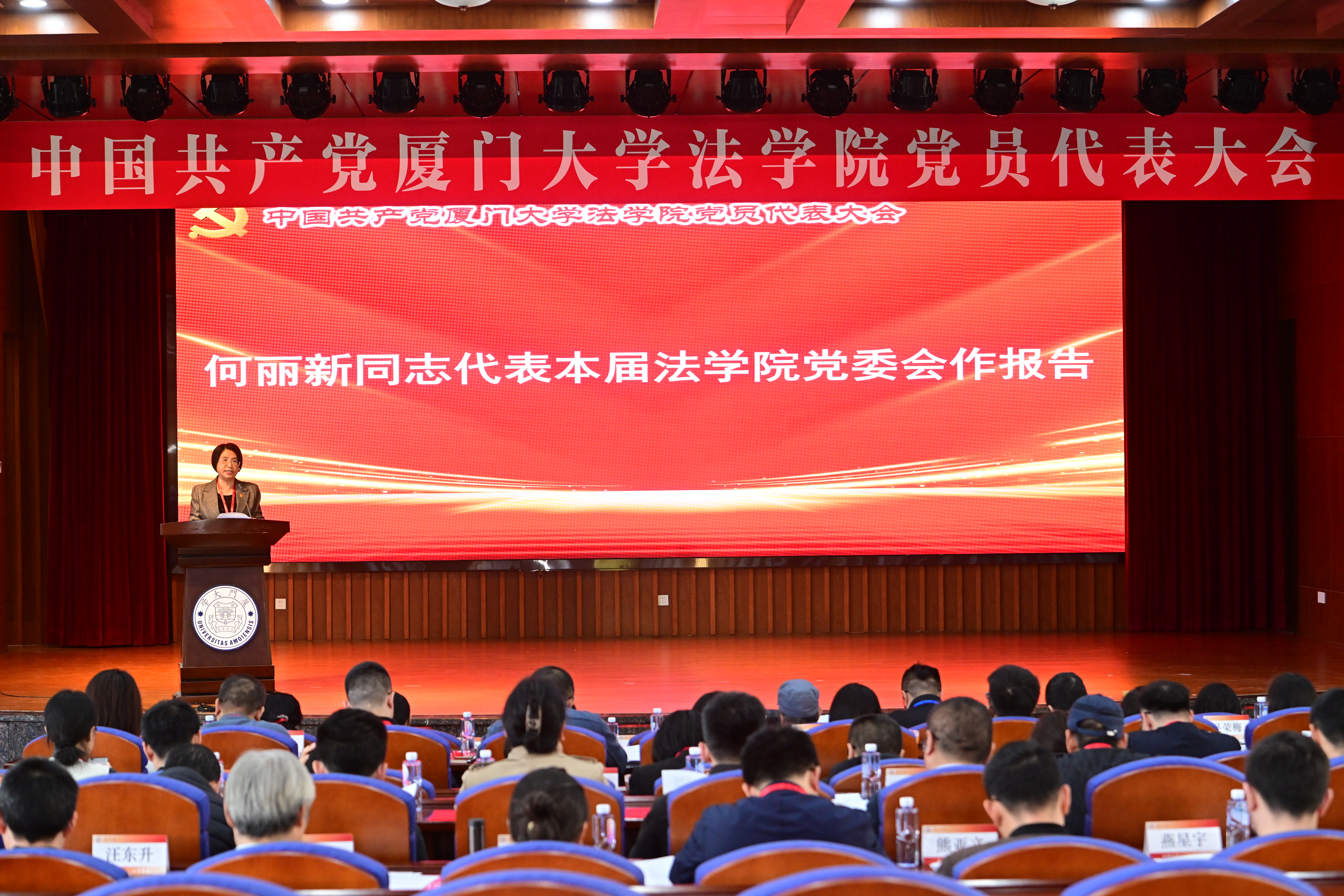 会上,学院党委书记何丽新代表本届党委作题为《凝心聚力 守正创新 为建设国内一流、国际知名的法学院而团结奋斗》的报告。报告指出,本次党员代表大会,是深入学习贯彻习近平新时代中国特色社会主义思想和党的二十大精神,落实厦门大学第十二次党代会精神召开的一次重要会议。报告总结了本届党委的主要工作和事业发展成就,分析了学院发展面临的形势、机遇与挑战,提出了今后五年学院建设发展的指导思想、奋斗目标和基本思路,部署了推动学院内涵式高质量发展的五大重点任务。
