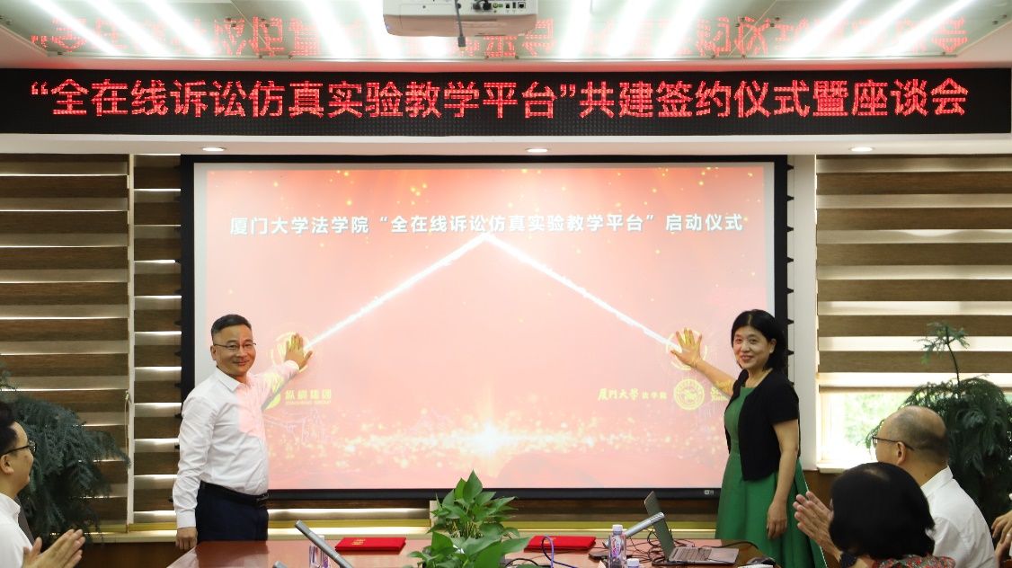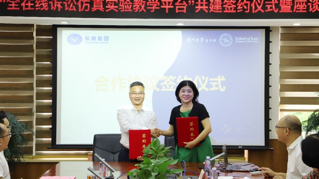 全国高校首个“全在线诉讼仿真实验教学平台”于6月1日落户厦门大学法学院。当日上午,厦门大学法学院宋方青院长与厦门纵横集团股份有限公司林龙智董事长签署合作协议。双方按下启动按钮,标志着“全在线诉讼仿真实验教学平台”正式启动。