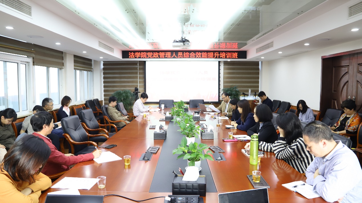 接着进行法学院第二期党政人员素质能力提升培训班,法学院、知识产权院全体行政人员参与了本次会议。法学院党委副书记郭锦星提出,理论学习应当与人文社会科学学科的建设相结合,应当落实到学院内部治理水平的提高上。学院须根据学校要求,强化学院党委的政治领导,健全完善学院党委会会议议事规则、党政联席会议议事规则,在学院形成集体领导、党政分工合作、协调运行的工作机制,加强治理的标准化和规范化,不断推进学院治理体系和治理能力现代化。