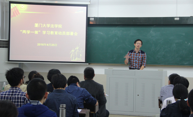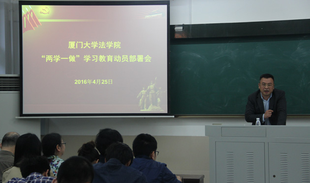 开展“两学一做”学习教育,是全面贯彻党的教育方针与落实立德树人根本任务的内在要求。厦门大学法学院将以法学学科成立90周年为契机,贯彻落实“两学一做”学习教育工作,凝聚各方力量,同心同德,为实现把法学院建设成为国内一流、国际上有较大影响的目标提供坚强组织保证。