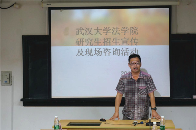6月25日晚7:30分,武汉大学法学院研究生招生宣传及现场咨询活动在我院c座420教室开展。武汉大学法学院法学院教授法学博士、博士生导师漆彤,我校法学院党委副书记周蕾,团委书记高斌参与了本次活动。