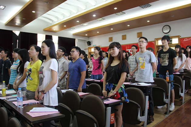 2014年7月5日,我院第二十三次团员代表大会暨第三十三次学生代表大会在法学院模拟法庭召开。本次到场的嘉宾有我院党委书记李智勇、党委副书记周蕾、团委书记高斌、辅导员林旭荣。下午14时30分,会议正式开始。会议主持人赵青首先宣读大会注意事项,宣布大会开幕。全体与会人员起立,奏唱国歌。