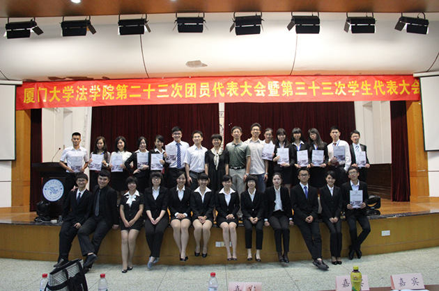 候选人演讲完毕,大会即刻进入投票阶段。此后,现任学生会副主席陈钰通报了《厦门大学法学院“优秀学生骨干”、”学生工作积极分子“、”先进班集体“评选条例》修改提案,最主要修改之处为新增六个评选名额,允许十三委参评两大方面。团总支委员会书记方伊臻、学生会主席应一扬分别作第二十二届法学院团总支委员会、第三十二届法学院团总支委员会工作报告。报告结束之后,进入团总支委员会、学生委员会任职证书颁奖仪式及2013年——2014年度法学院优秀学生工作者、先进班集体表彰仪式,以表彰十三委及优秀学生工作者在过去的一年中所付出的所有努力和取得的成就。