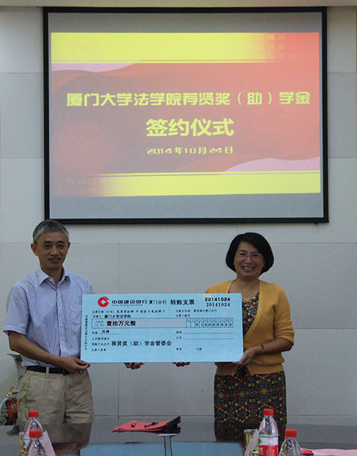 据悉,齐树洁教授作为荐贤奖(助)学金最先发起人,率先捐助两万元并广泛发动校友捐助。各地校友合计83人踊跃捐款,共募集343533元用于荐贤奖(助)学金发放。此后,法学院将设立荐贤奖(助)学金管委会。自2014年起连续六年,荐贤奖(助)学金管委会将每年捐资五万元给法学院在读本科生、研究生,并资助《法学阶梯》的编写发行。荐贤奖(助)学金是我院设立的首个将部分资金专项投入学生刊物的奖(助)学金。该项奖(助)学金的设立,对于进一步完善我院的资助管理体系,推动我院学生创新创业意识,倡导良好学风,具有非常重要的积极影响。