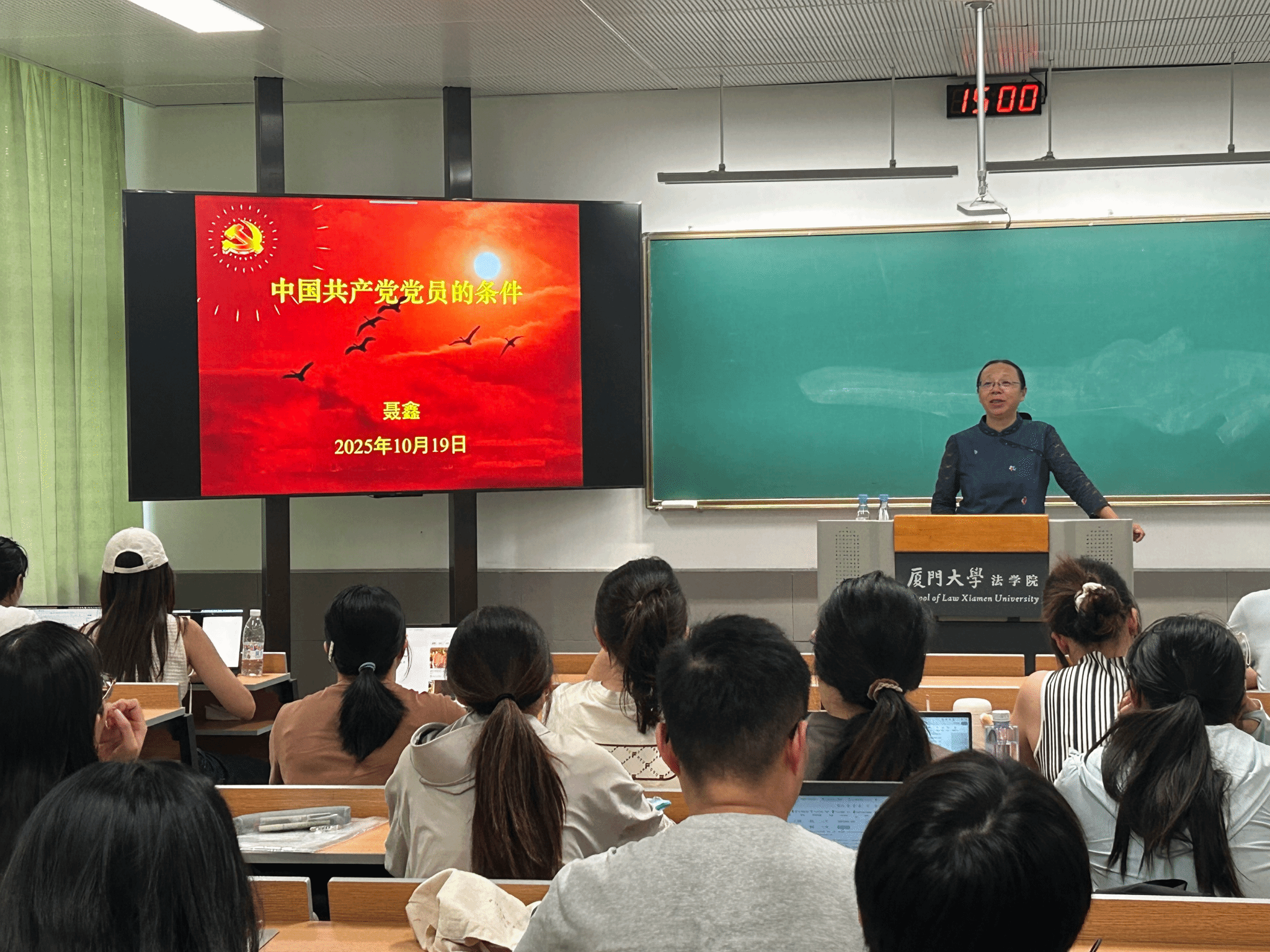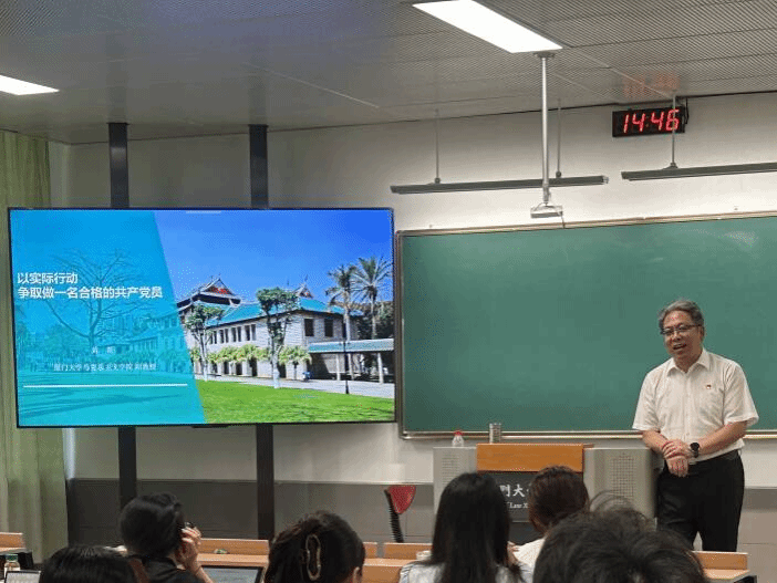 化学化工学院党委副书记聂鑫教授讲授《中国共产党党员的条件》专题党课。聂老师详细解读了入党前提、党员标准及权利义务,为学员们在当下和未来如何以一名共产党员的标准严格要求自己指明了道路。