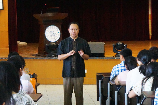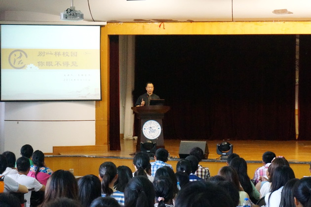 最后,李老师以林文庆校长一以贯之的宗旨“在博集东西各国学术之精华,以发现一切现象之底蕴与功用,同时阐发我国固有学艺之美质,使之融会贯通,以造成一种最新最美之文化。”告诉大家大学之大在于其传奇和情怀,大学之大在于将同学们引向一个“大境界”。