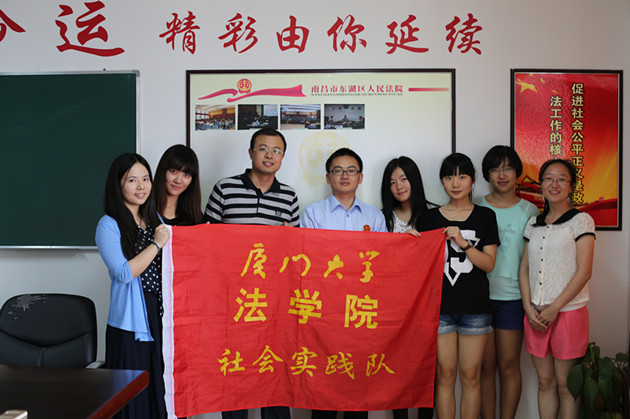 2014年7月29号,我院“东湖厦海”实践队一行七人来到了江西省南昌市东湖区人民法院,展开了为期四天的社会实践调研。该院进行了热情接待,并安排刑庭专门负责轻微刑案的青年骨干法官对同学们进行答疑解惑。