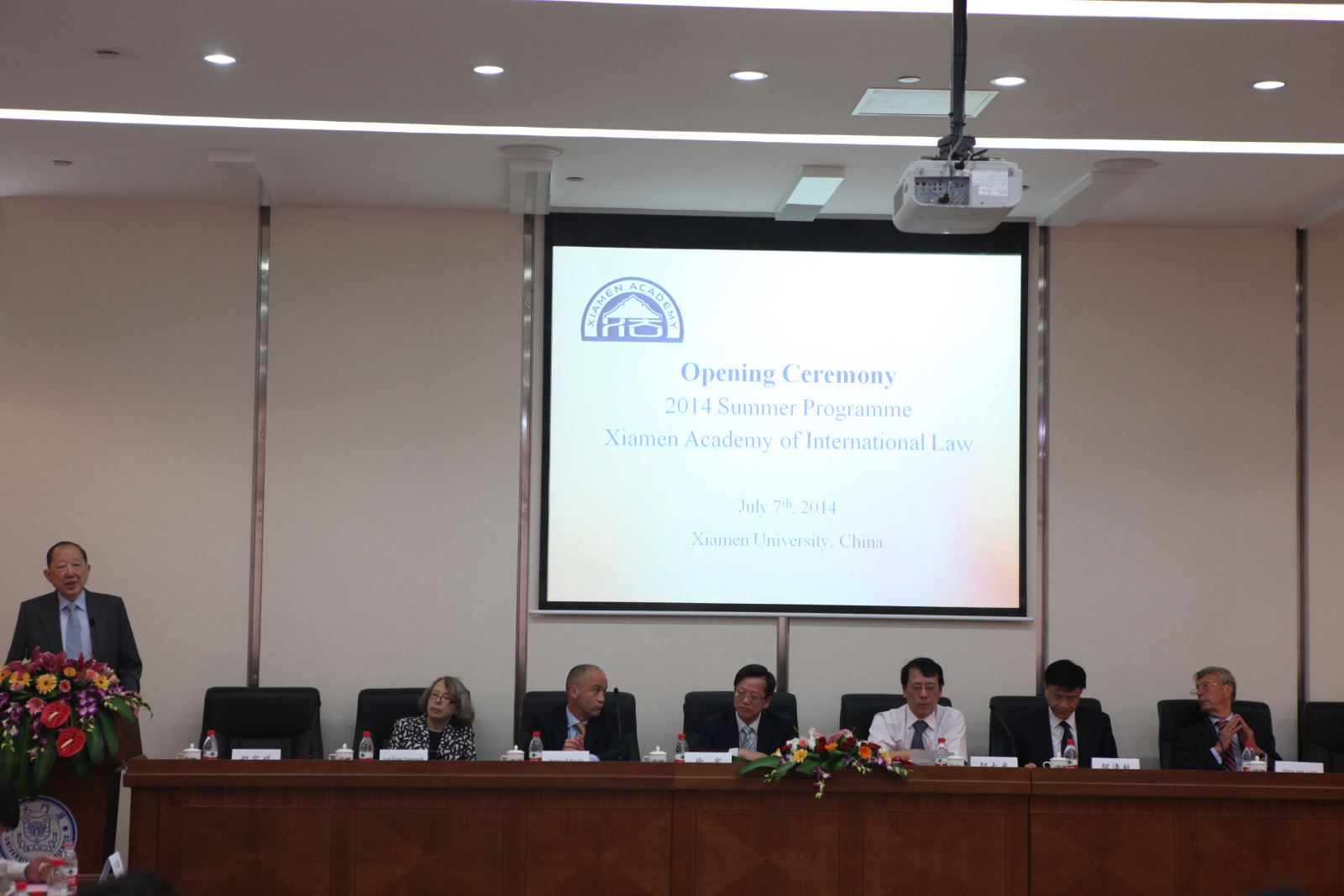 邬教授首先对来自近20个国家和地区的120余名学员表示热烈欢迎,也向负责暑期班授课的所有教授表示诚挚的谢意,并对外交部条法司司长徐宏先生的出席表示由衷的感谢。邬教授指出,自2005年起,厦门国际法高等研究院在引领各高校暑期班活动开展方面起到重要作用。随后,何清秋先生代表厦门市人大常委会向暑期班开班表示热烈祝贺。他介绍了“海上花园”厦门的优美风景和丰厚的人文环境,希望来自不同国家和地区的学员可以通过暑期班认识厦门。