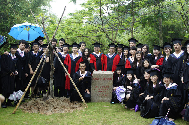 下午4点,毕业生植树纪念活动于海滨篮球场旁举行,徐崇利院长、李智勇书记等嘉宾老师和学生代表一同为法学院种下两棵树苗,纪念石碑上刻有“诚意正心,爱人利物”,表达了对我院2014届本科毕业生诚以待人、品行端正的良好品质和期许,也希望小树茁壮成长可以见证法学院和2014届本科毕业生的共同成长与发展。下午4点半,毕业照拍摄活动于海滨篮球场举行,2014届本科毕业生分别以年级和班级为单位与各位学院的老师们一起拍摄了毕业照。合照结束后广大师生一起前往海韵大丰苑进行了毕业会餐。