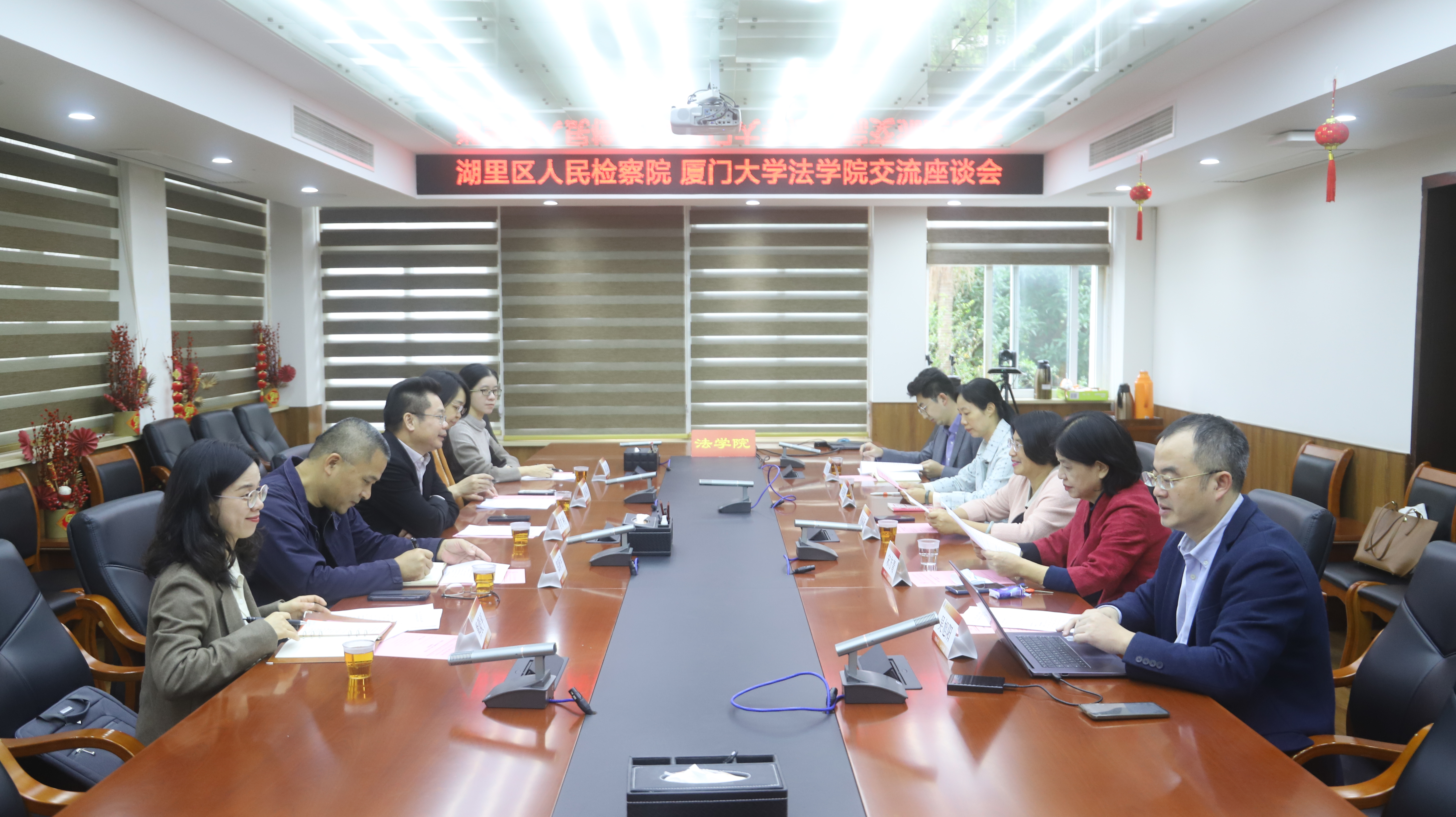 12月6日上午,湖里区人民检察院党组书记、检察长李才利,党组成员、副检察长郑新宇,党组成员、政治部主任张燕君等一行五人莅临我院,与学院党委书记何丽新、院长宋方青等座谈,就进一步推进“生物多样性公益保护研学基地”联合建设有关工作进行交流研讨。座谈会由副院长朱晓勤主持。