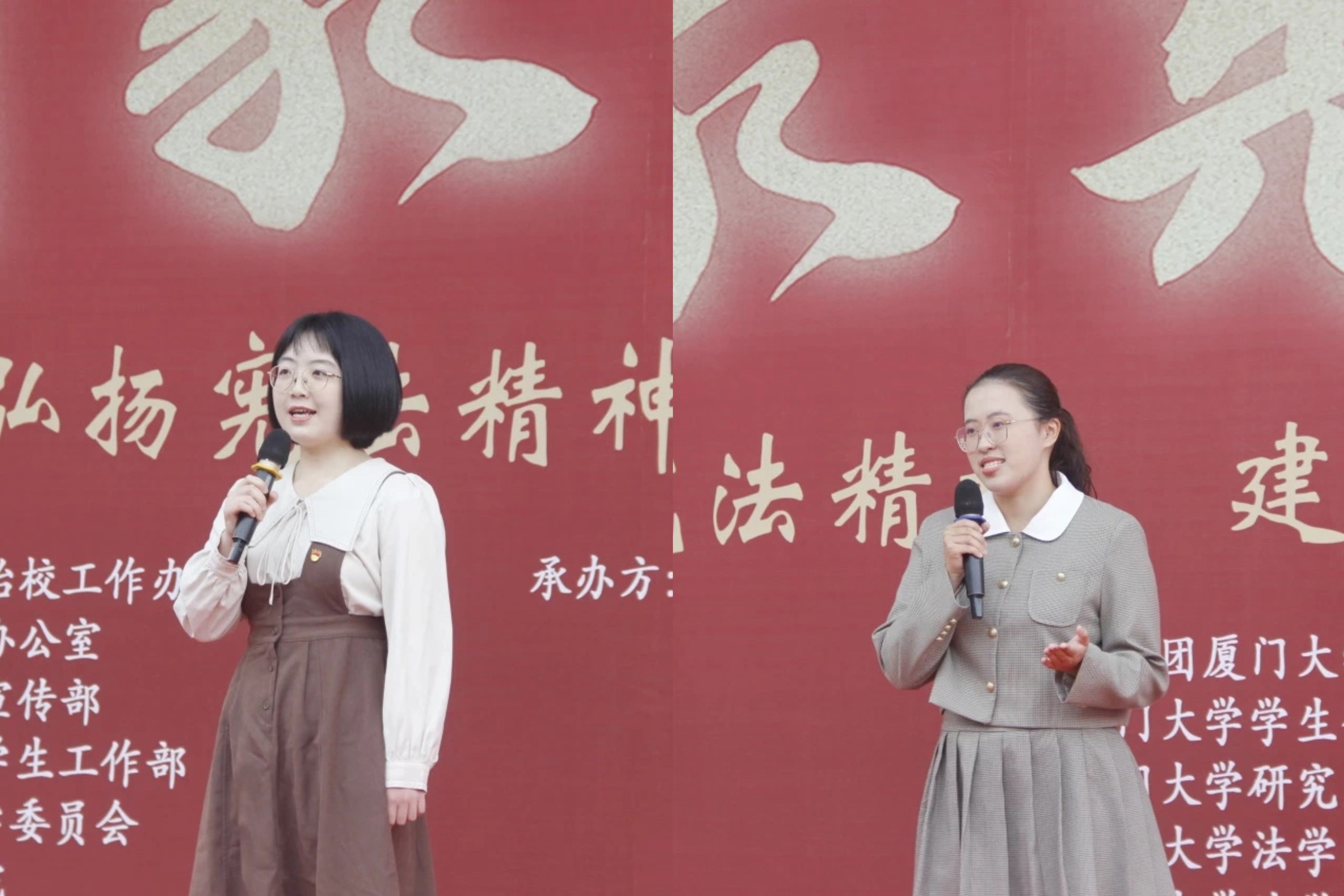 法学院2020级本科生张琳和2022级本科生吴雅芸作主题演讲《守宪法温度 护生命尊严》与《胸怀宪法 笃实于行》,将宪法法条的介绍与生动具体的案例相结合,带大家更真切地感受宪法温度,沐浴法治阳光。