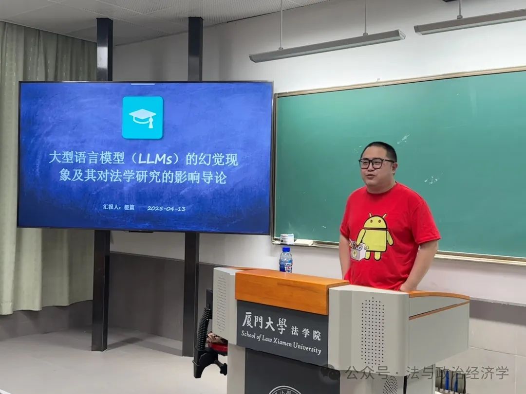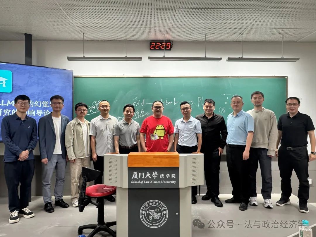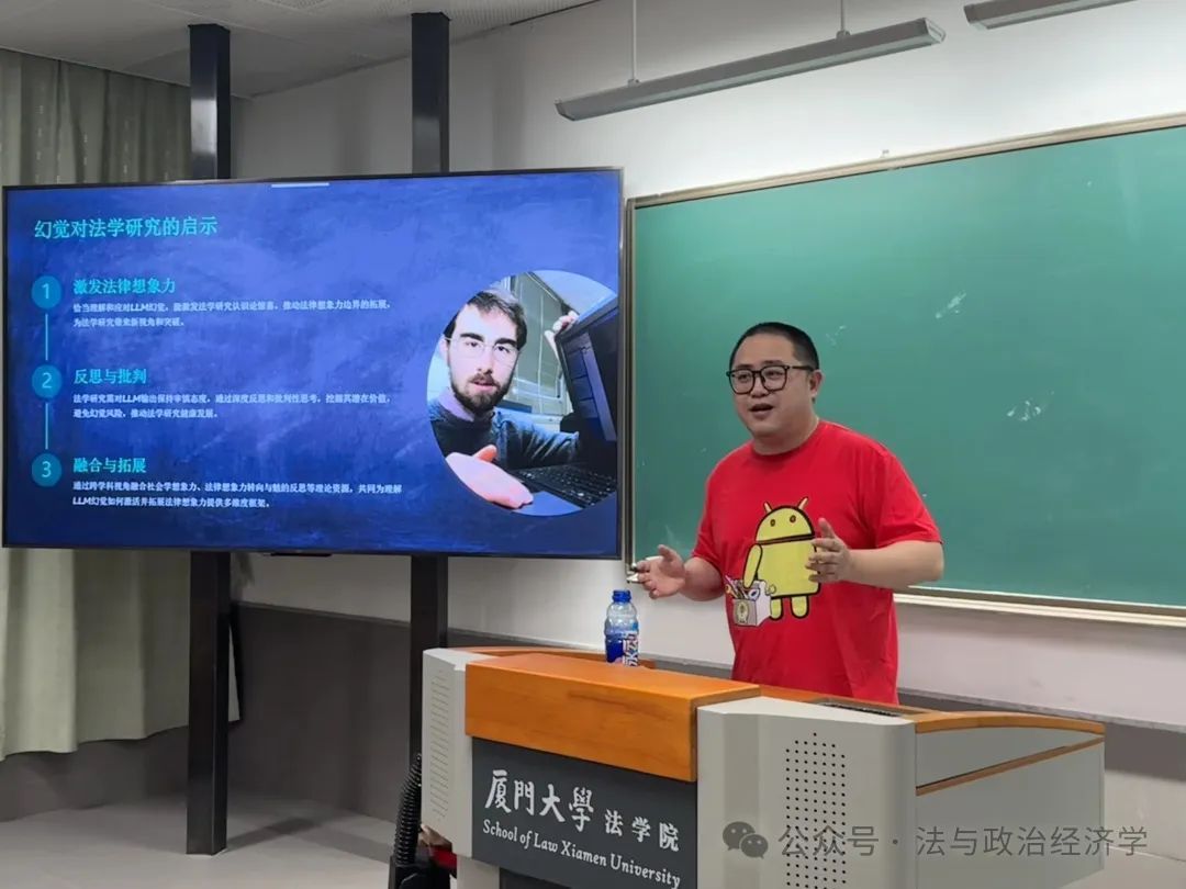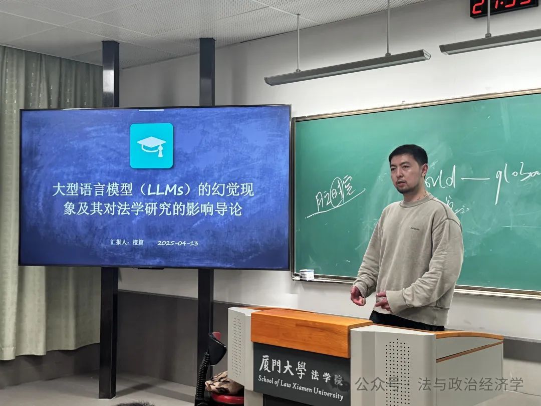 2025年5月28日晚上,信实“青椒会”学术论坛第九十四期暨“数字法沙龙”第八期在厦门大学法学院A204教室成功举办。在这个知识的夜晚,江西财经大学法学院副教授杨安卓老师带来了一场题为“幻觉与惊喜:大语言模型法学研究的认识论基础”的学术讲座。本场讲座由厦门大学法学院法与政治经济学研究中心主任毛海栋老师主持,并特别邀请上海交通大学凯原法学院李学尧教授、厦门大学法学院数字法与交叉法学教研中心主任吴旭阳老师、厦门大学生命科学学院吕建伟老师以及厦门大学法学院魏磊杰教授、杨帆老师、燕星宇老师、许素敏老师担任与谈人。杨安卓老师以其深邃的学术思考、独特的理论视角与幽默而精准的表达,为现场听众开启了一场知识与思想的奇幻之旅。