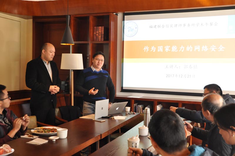 2017年12月21日,法学院青年教职工协会主办的信实学术午餐会(第六期)在法学院咖啡厅如期举行。本次学术午餐会邀请到法学院副院长郭春镇教授做主题为“作为国家能力的网络安全”的报告,主持人是法学院罗立国副教授。