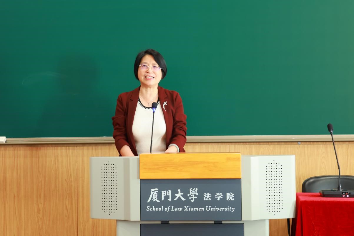 之后,厦门大学法学院党委书记何丽新教授致辞。何丽新首先对到场的嘉宾表示欢迎和感谢,指出近年来在各界的共同努力下,我国法治建设取得了长足进展。厦门大学法学院在涉外法治建设领域,也迎来了有里程碑意义的重要发展。本次论坛的顺利召开离不开北京大成(厦门)律师事务所的大力支持和积极贡献, 对此表示诚挚的感谢!何丽新指出,本次论坛是一个思想碰撞与智慧分享的重要平台,希望大家通过深入交流与探讨,为民商法治理论和实践注入更多创新动力。