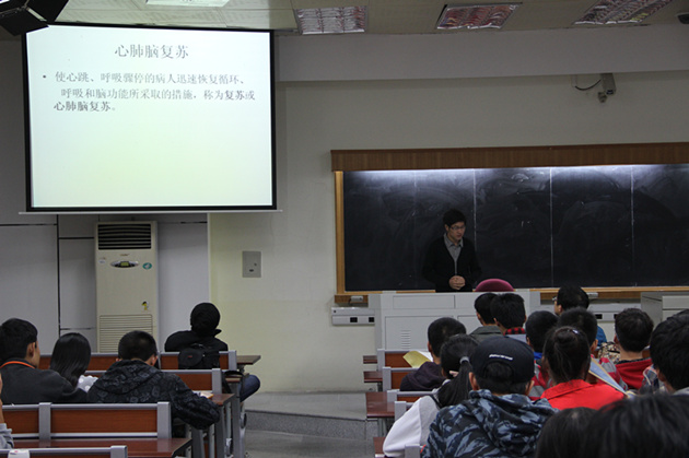 油火扑灭演练结束后,全体同学移步法学院B138教室,来自厦门大学医学院的硕士生苏强同学为大家进行心肺脑复苏的讲座。本次防灾疏散演练活动在浓浓的学习氛围中落下帷幕。