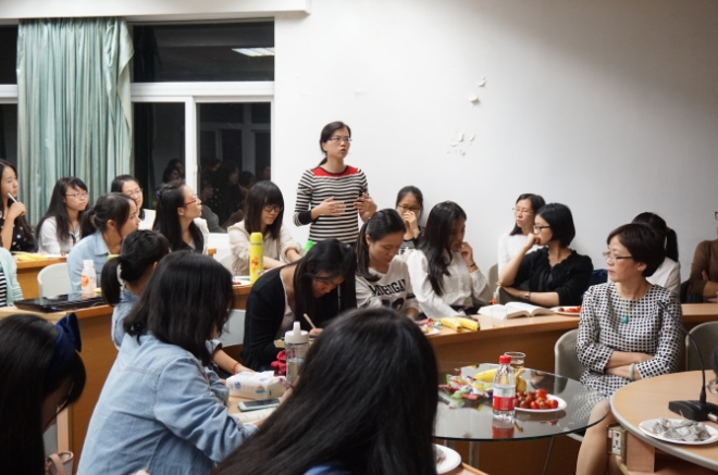 在同学们做完自我介绍之后,丁老师和何老师分别结合自己的人生经历,向大家讲述了女生该如何平衡工作与休息,以及应该以怎样的心态面对生活中的压力。丁老师认为女生诸多压力,大都是面对问题时想得太多,学会暂时放下问题,去游泳、逛街或者户外运动都是排解压力的方式,“也许睡过一觉,你的想法就不一样了”。