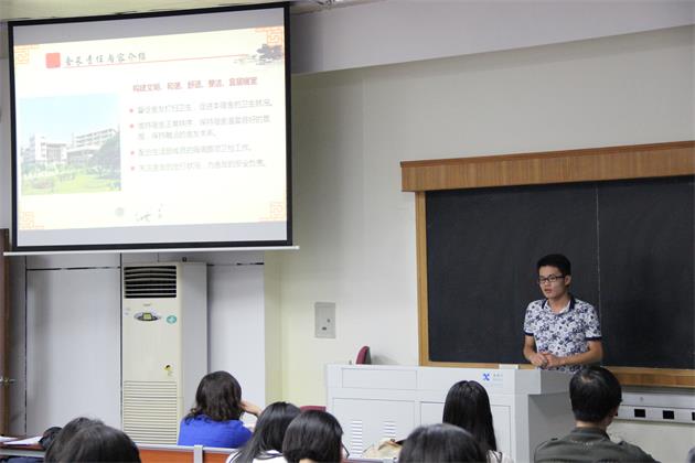 随后,生活部副部长彭剑文同学帮同学们明细了舍长责任。他认为,舍长应督促舍友打扫卫生,促进本宿舍的卫生状况;注意维持宿舍正常秩序,保持宿舍温馨良好的氛围,保持融洽的舍友关系。舍长还应当配合生活部成员的每周查寝卫检工作,关注舍友的出行状况,为舍友的安全负责,自觉进行假期离校返校统计。