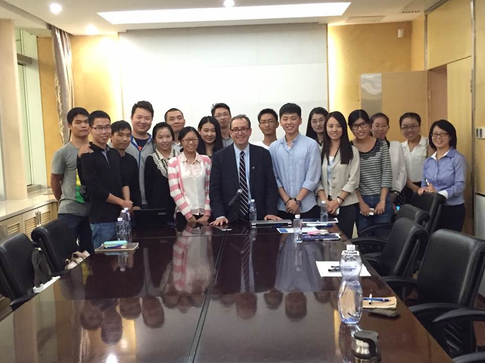 在最后的现场提问环节,同学们踊跃提问。Daniel M.Filler教授主要就美国法学院学生的学习生活状态、美国法律博士JD学位的取得条件、律师如何帮助穷人等问题作出了详细的问答,赢得了同学们的阵阵掌声。最后,Daniel M.Filler教授给到场的同学分发了其给大家带来的小礼物,并与大家进行了合影。