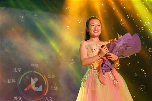 在来自信息科学与技术学院的梦邮乐队激情的暖场演出之后,分别来自七个学院的七位主持人隆重登场,宣布晚会正式开始。随后,歌舞、国防生表演、器乐合奏、心理剧、跆拳道、阿卡贝拉(无伴奏合唱)、魔术等精彩绝伦的节目一一呈现。由法学院曲畅、高诗祺同学带来的美声演唱《美丽的心情》极具大家风范,赢得了满堂的赞赏与喝彩;周宇迪同学灵活的身姿、精彩的舞步将青春活力展现得淋漓尽致,引得全场尖叫;由高瑜聪、刘思妤、吴泽华、林欣带来的《说你爱我》压轴登场,他们新颖的唱法和强大的气场点燃了晚会现场的激情,深情的歌声更是抓住了现场所有人的心。现场有同学赞叹到:“法学院不鸣则已,一鸣惊人!”