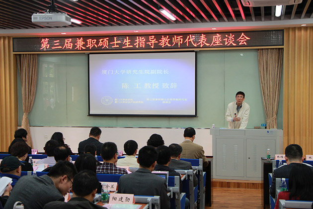 首先由陈工教授致开幕词。陈工教授代表厦门大学对出席仪式的来宾致以诚挚的谢意,他表示,厦门大学法学院和知识产权研究院兼职硕士生指导教师队伍建设,是教育改革、人才培养模式重要创新的具体举措。此举对于进一步提高专业学位硕士研究生的指导水平,提高培养质量,促进高层次法律人才培养与产业、行业、企业、社会紧密结合,具有重要的促进作用。希望各位专家总结经验,畅所欲言,提供真知灼见,为学院进一步提高研究生的培养质量建言献策,共同努力把厦门大学法学院建设成为国内一流、国际上有一定影响的法学人才培养基地。