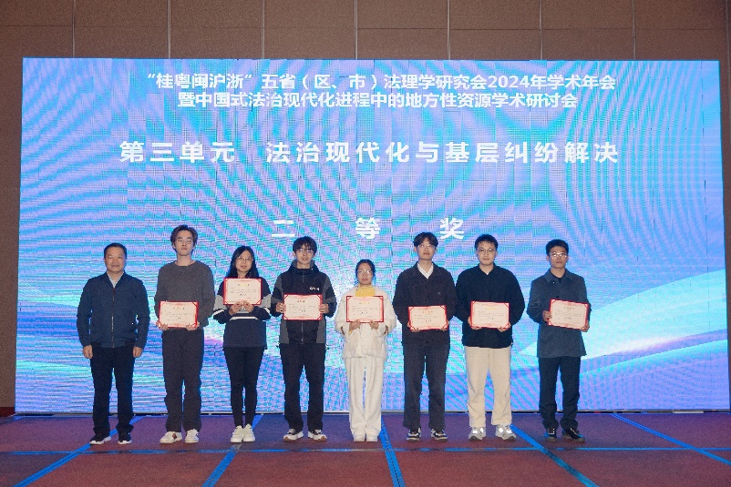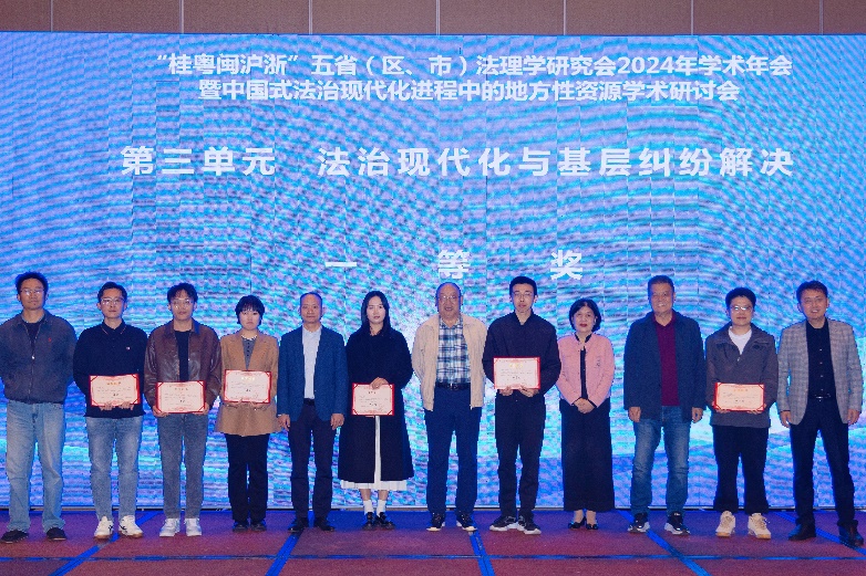 2024年11月23日,“桂粤闽沪浙”五省(区、市)法理学研究会2024年学术年会暨中国式法治现代化进程中的地方性资源学术研讨会在浙江省绍兴市新昌县隆重召开。本次会议的主题为“地方治理与中国式法治现代化”,由浙江省法学会法理法史学研究会、浙江大学法理研究所承办,新昌县人民检察院协办。厦门大学法学院部分师生参加本次学术年会。