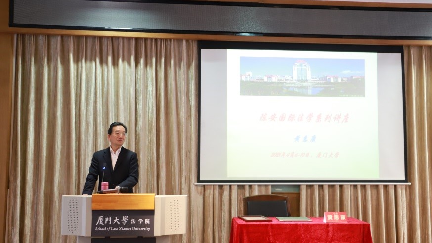 4月6日至10日,为庆祝厦门大学百年华诞,法学院国际法学科举办的国际法学科系列学术活动——“陈安国际法学讲座教授”黄惠康教授国际法前沿系列讲座在厦门大学法学院模拟法庭成功举办。联合国国际法委员会委员、外交部国际法咨询委员会主任委员、国际常设仲裁法院仲裁员黄惠康教授连续做了四场学术讲座,分别题为《从融入走向引领,为国际法治贡献中国智慧——庆祝新中国恢复联合国合法席位50周年》、《法律与外交的融合之道——兼论国际法研究生学位论文的课题选择》、《当前国际形势和国际法热点问题——兼论法学本科同学的专业选择》以及《中国的条约法律外交——兼论当前国际法领域涉我风险点》。中国国际经济法学会会长、厦门大学陈安国际法学发展基金会理事长曾华群教授代表基金会向黄惠康教授颁发“陈安国际法学讲座教授荣誉证书”,正式聘请黄教授为“陈安国际法学讲座教授”。
