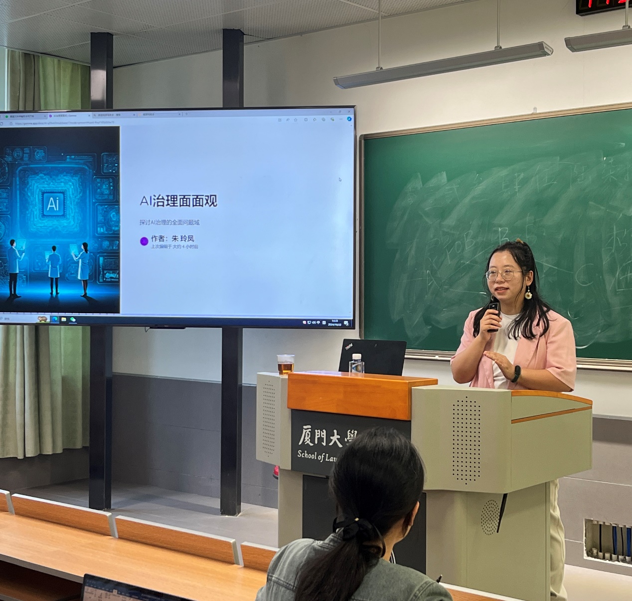 2024年10月22日下午,厦门大学法学院第六十九期信实“青椒会”学术论坛在A202教室顺利举办。本期论坛邀请人工智能治理资深专家朱玲凤女士主讲“AI治理面面观”,阳建勋、吴旭阳、杨帆、龚宇、刘玉姿、王云清、孙笑涵、邢文升、傅雪婷、毛海栋等十余位教师、福建信实律师事务所陈威、吴立智、胡安等律师以及几十位学生参加。论坛由毛海栋老师主持。