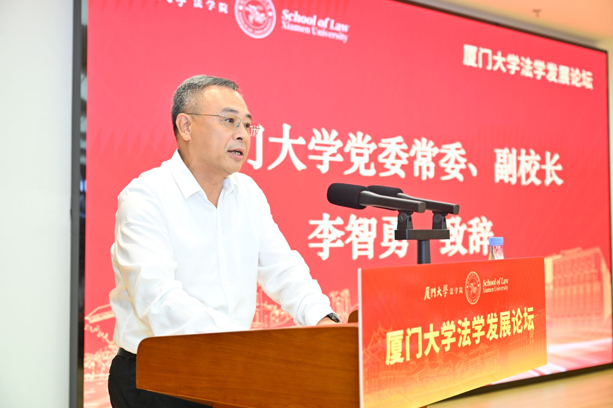 李智勇在致辞中指出,厦门大学法科于1926年应运而生,是中国近代法学教育在东南沿海的重要发源地,在近百年的办学历程中,逐步成为我国法学教育研究重镇和涉外法治人才培养的重要基地。他强调,厦门大学将深入贯彻落实习近平法治思想,将社会主义法治建设的经验转化为优质的育人资源,不断推动法学教育、法学理论研究及法学学科改革创新,着力培养高素质法治人才,为完善中国特色社会主义法治体系、建设社会主义法治国家提供支撑。