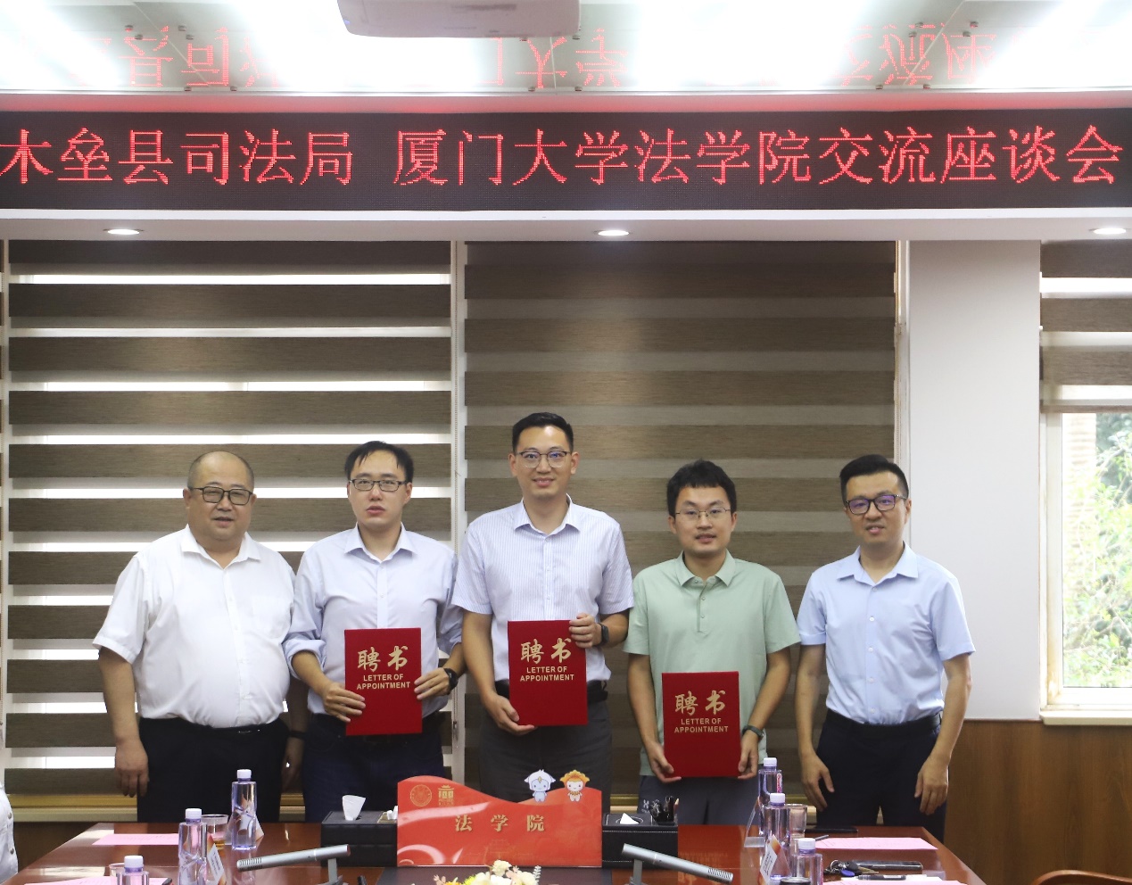 今年8月,厦门大学法学院与木垒县司法局签署合作协议,共建“闽疆(木垒)石榴籽公共法律服务工作室”,我院刑法学科副教授熊亚文、民商法学科助理教授林斯韦、宪法学科助理教授许瑞超受聘担任工作室专家。会上,陈长庚书记为三位老师颁发聘书。