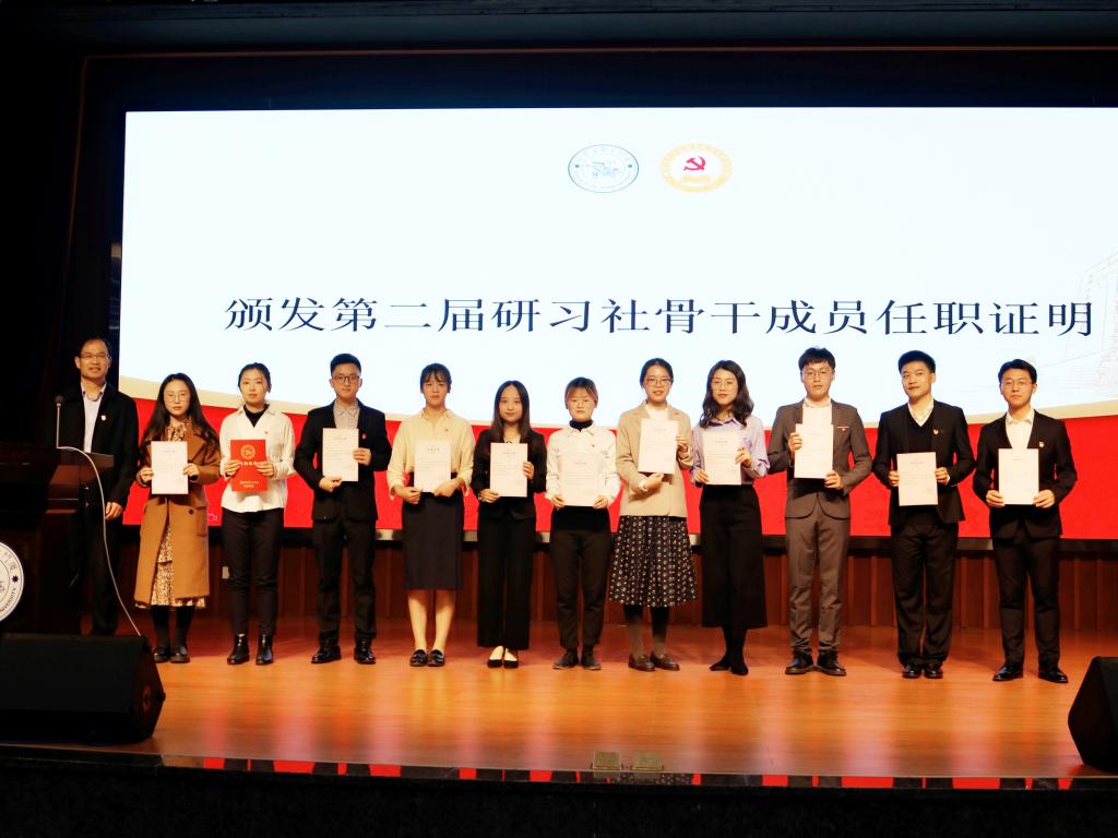 接着,法学院党委副书记郭锦星老师为研习社第二届骨干颁发了任职证明,代表学院党委对第二届研习社骨干成员一年来的辛勤工作与付出表示衷心的感谢。随后,法学院团委副书记、研习社社团指导老师杨璐老师宣布了新一届社团骨干成员任职名单,根据《厦门大学党规党纪学生研习社社团章程》,经本人申请、支部推荐、组织考察等程序,学院党委决定任命徐瑞祥等14位同学为厦门大学党规党纪学生研习社第三届骨干成员。