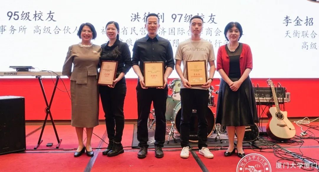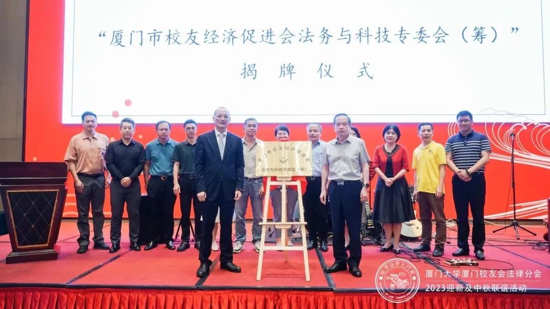 随后,何丽新书记、宋方青院长为本次增补的副会长庄甘露、洪德利、常务理事李金招授牌,一同见证“厦门市校友经济促进会法务与科技专委会(筹)”揭牌,并致辞介绍学院情况,肯定校友会的工作成绩,为校友们送上真诚祝愿。