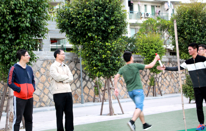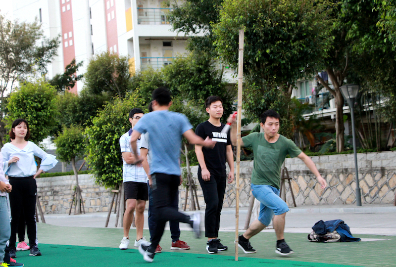 在进行了简单的热身后,研究生会体育部组织同学们进行集体项目的练习,讲述和示范交接接力棒的技术要领,规范运动员们的动作。参加接力赛的同学们在简单地分组后进行了多轮练习,郭锦星、高斌、宋磊华老师全程指导。