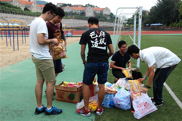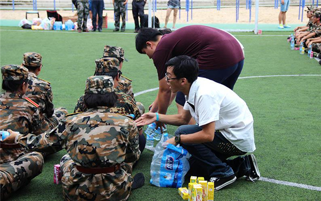 在慰问表演进行的同时,学长学姐们也为辛苦训练的同学及承训官兵们带来了饮品与食物。