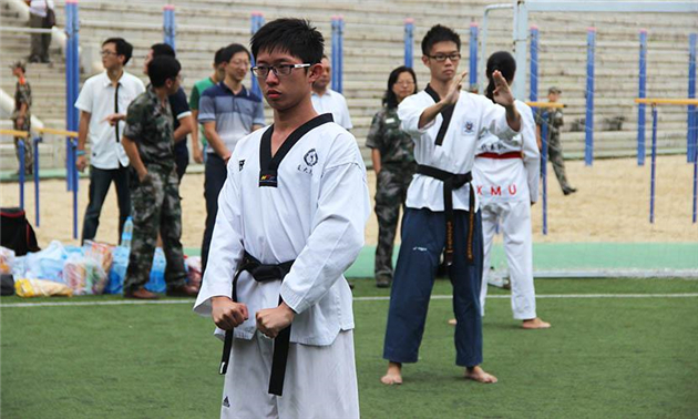 接下来,由校跆拳道社的同学们带来的暖场表演瞬间点燃了全场的热情。