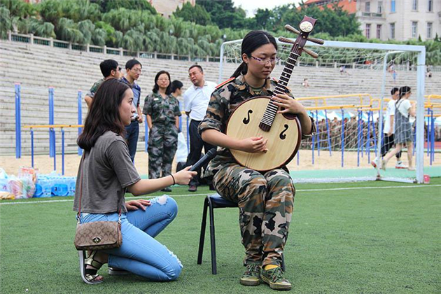 跆拳道表演后,2015级本科生程雅卓同学带来传统乐器阮的独奏表演。