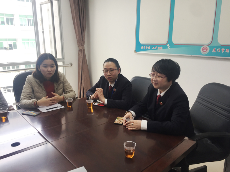 在思明区人民检察院,两位公诉科检察官李美霖、游雅静热情地接待了来访的2016级本科生一班团支部同学。在简短的自我介绍后,同学们一一发言,提出自己的疑惑。两位检察官根据自己的工作经验,尽可能地为同学们全方位地展示了检察院工作的魅力。