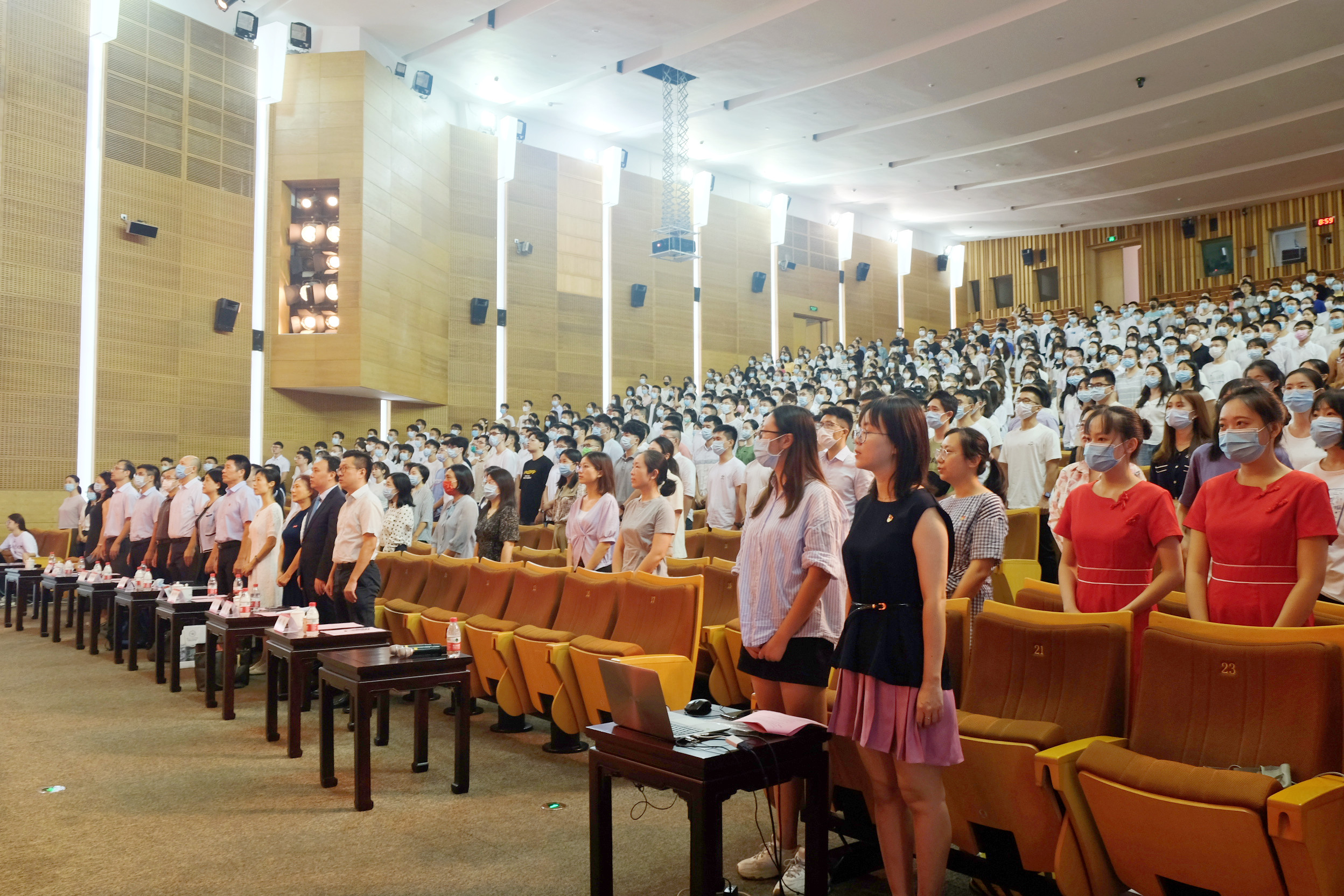 (全体师生合唱中华人民共和国国歌)