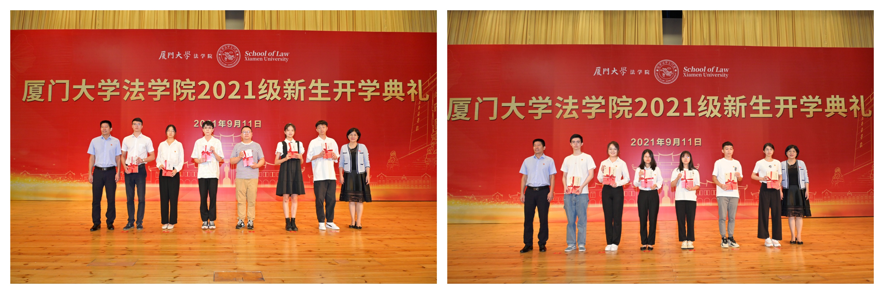 开学典礼上,法学院还为新生们精心准备了一份特殊的开学礼物——《陈嘉庚传》与《为吾国放一异彩——厦门大学与伟大祖国》,分别赠与全体新生和新生党员,期盼新生们以真才实学和赤子之情逐梦廌园,成长为堪当民族复兴大任的时代青年。