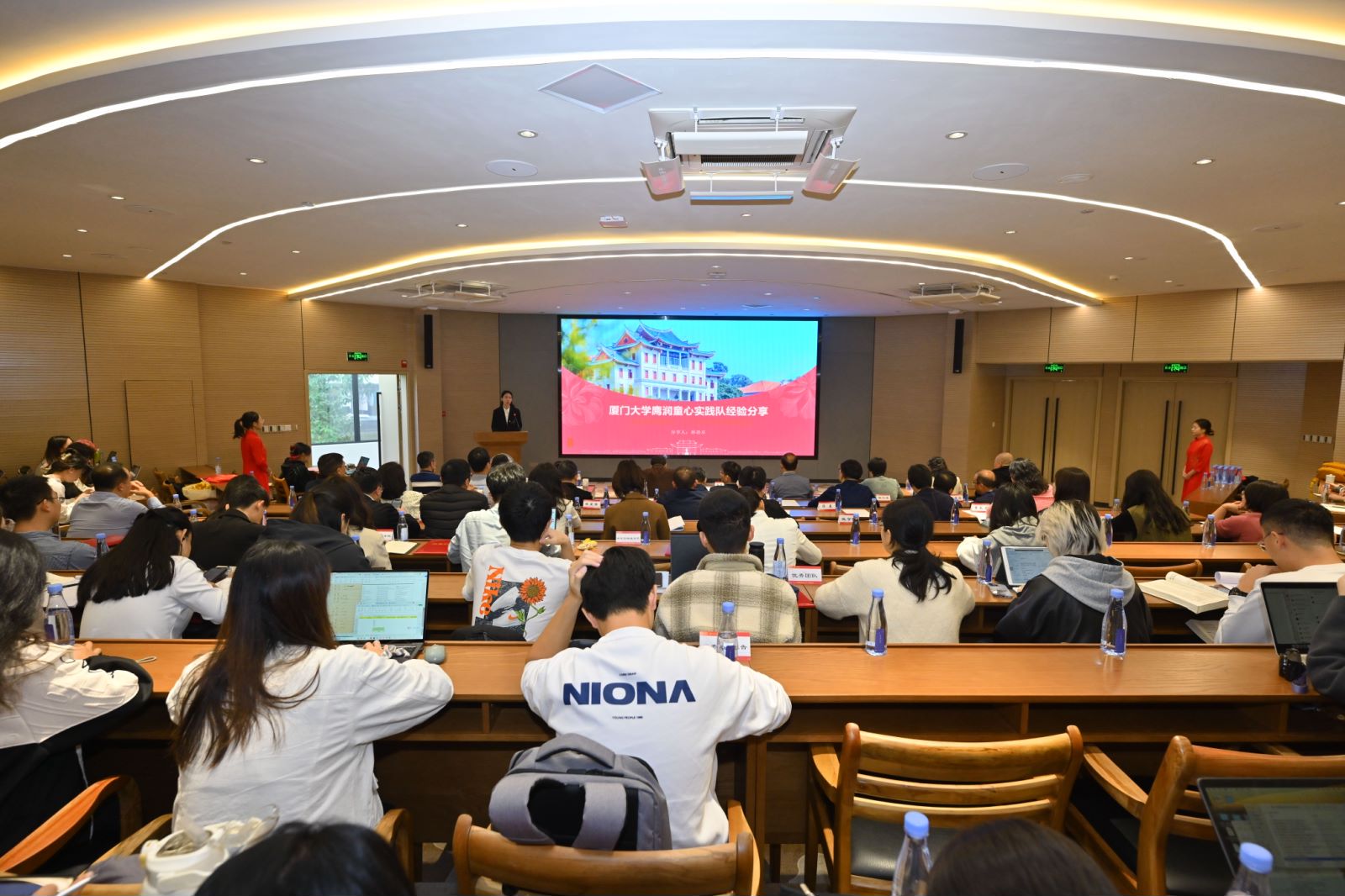 “廌润童心”暑期实践队在表彰大会上做交流分享