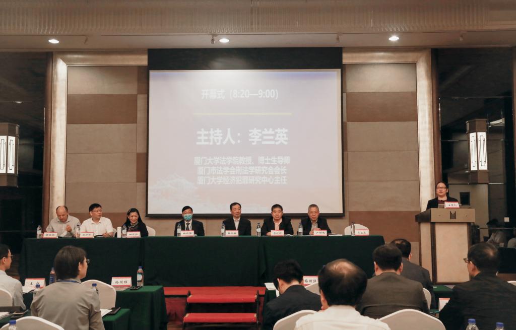 中国刑法学研究会副会长、西南政法大学法学院院长梅传强教授、厦门市委政法委委务会成员、厦门市法学会党组成员、副会长吴少鹰、厦门大学法学院副院长郭春镇教授在开幕式上致辞。南京大学法学院孙国祥教授、苏州大学王健法学院李晓明教授、华东政法大学刑事法学院卢勤忠教授、最高人民法院刑事审判第四庭副庭长、审判员(挂职)、中国人民大学法学院田宏杰教授出席开幕式。会议由厦门市法学会刑法学研究会会长、厦门大学经济犯罪研究中心主任、厦门大学法学院李兰英教授主持。