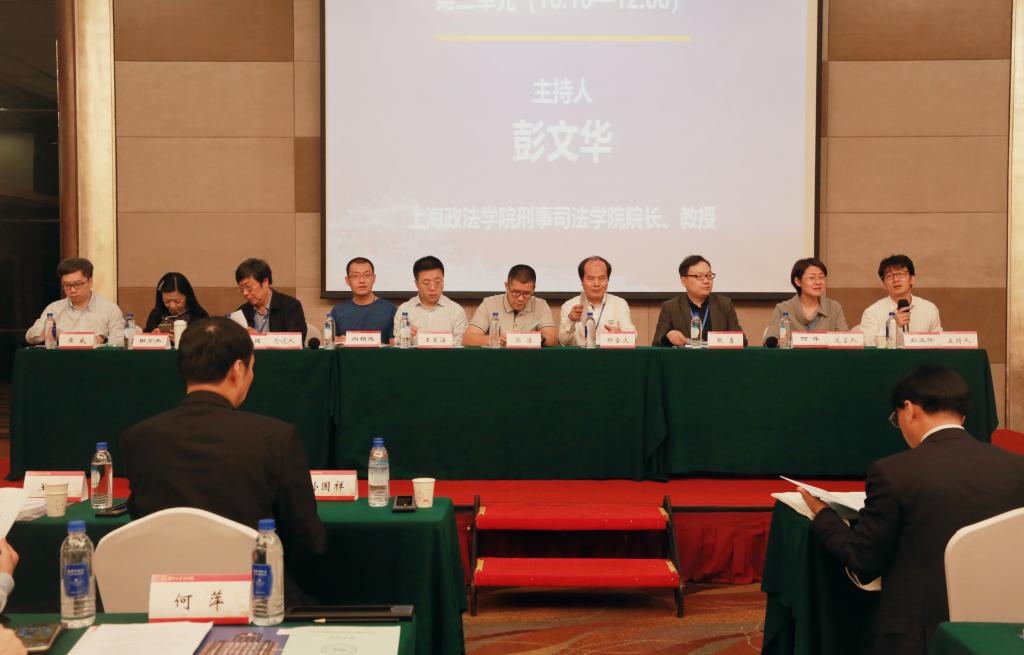 会议的第二个单元由上海政法学院刑事司法学院院长彭文华教授主持。首先,来自华东政法大学刑事法学院的何萍教授结合《刑法修正案(十一)》(草案二审稿)对于洗钱罪的修正,对洗钱罪的刑事立法完善过程进行了详细阐述,并提出了删除相关罪名和完善法条表述的相关建议。然后,华东政法大学研究生教育院副院长张勇教授做了题为《行政违法行为的犯罪化及其合理限制——兼评刑法修正案(十一)草案中野生动物保护的规定》的报告,结合疫情暴发后的立法新倾向,讨论了行政违法行为的犯罪化和限制行政违法行为犯罪化的合理根据,建议立法尽量明确刑法与行政法、刑罚与行政处罚的适用范围,避免交叉和冲突。接着,来自厦门大学法学院的郑金火助理教授以妨害安全驾驶罪、高空抛物罪的设立为例,从相对合理主义的立场观点出发,认为谴责并惩治这两种具有严重社会危害性的行为,可以更好地发挥刑法对于社会治理的积极作用,提高社会治理的水平。然后,福建师范大学法学院郭浩助理教授带来了题为《非法集资案件中的被害人身份认定——基于自陷风险的观察视角》的发言,从三种不同学说出发,聚焦集资参与人是否具有被害人属性这个问题,同时提出了自己对于最高人民法院“非法占有目的推定”的不同意见。随后,重庆市江北区人民检察院检察五部主任王东海检察官发表了题为《非法“公转私”的刑法治理》的发言,他结合执法和行政实践,分析了“公转私”在近年刑法修正案中由混合到独立,由成型到完善的特点。最后,来自西安市中级人民法院的尚柏延法官在题为《信息时代法定数字货币的法律属性与风险防控》的发言中讲述了虚拟货币的发展历程和新技术形态下的治理困境。