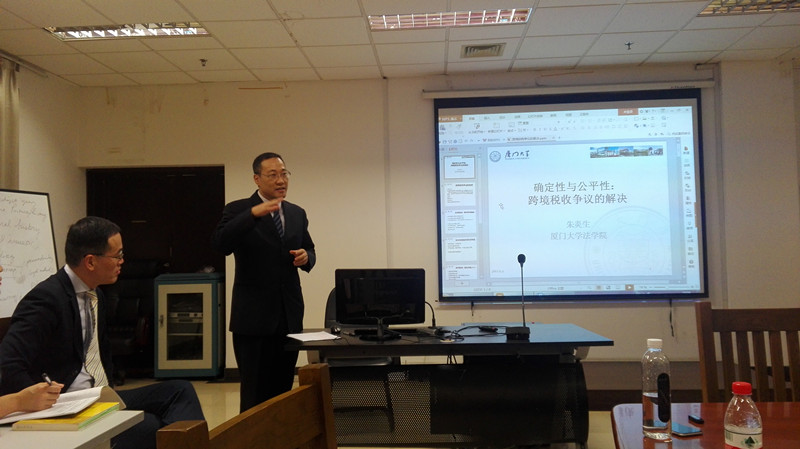11月4日晚,朱老师还应邀与山东大学法学院院长沈伟教授、耶路撒冷希伯来大学人权中心主任Tomer Broude教授以及西安交通大学法学院院长助理张生副教授一起,联合举行国际经贸问题与争端解决专题讲座,朱老师以“确定性与公平性:跨境税收争议的解决”为题,同到会师生分享了自己对此问题的认识和理解。