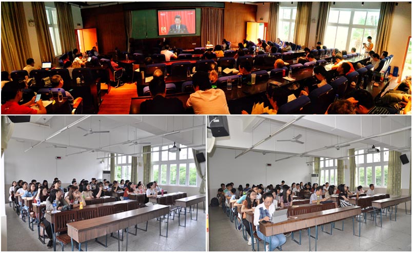 10月18日上午,中国共产党第十九次全国代表大会在人民大会堂开幕。习近平总书记代表第十八届中央委员会向大会作了题为《决胜全面建成小康社会 夺取新时代中国特色社会主义伟大胜利》的报告。法学院全体教职工、学院学生党员在B138报告厅、A301、304教室通过网络视频直播集体收看十九大开幕会,并分别在C419、C519会议室召开座谈会,结合工作和学习实践,畅谈对十九大报告的感想。